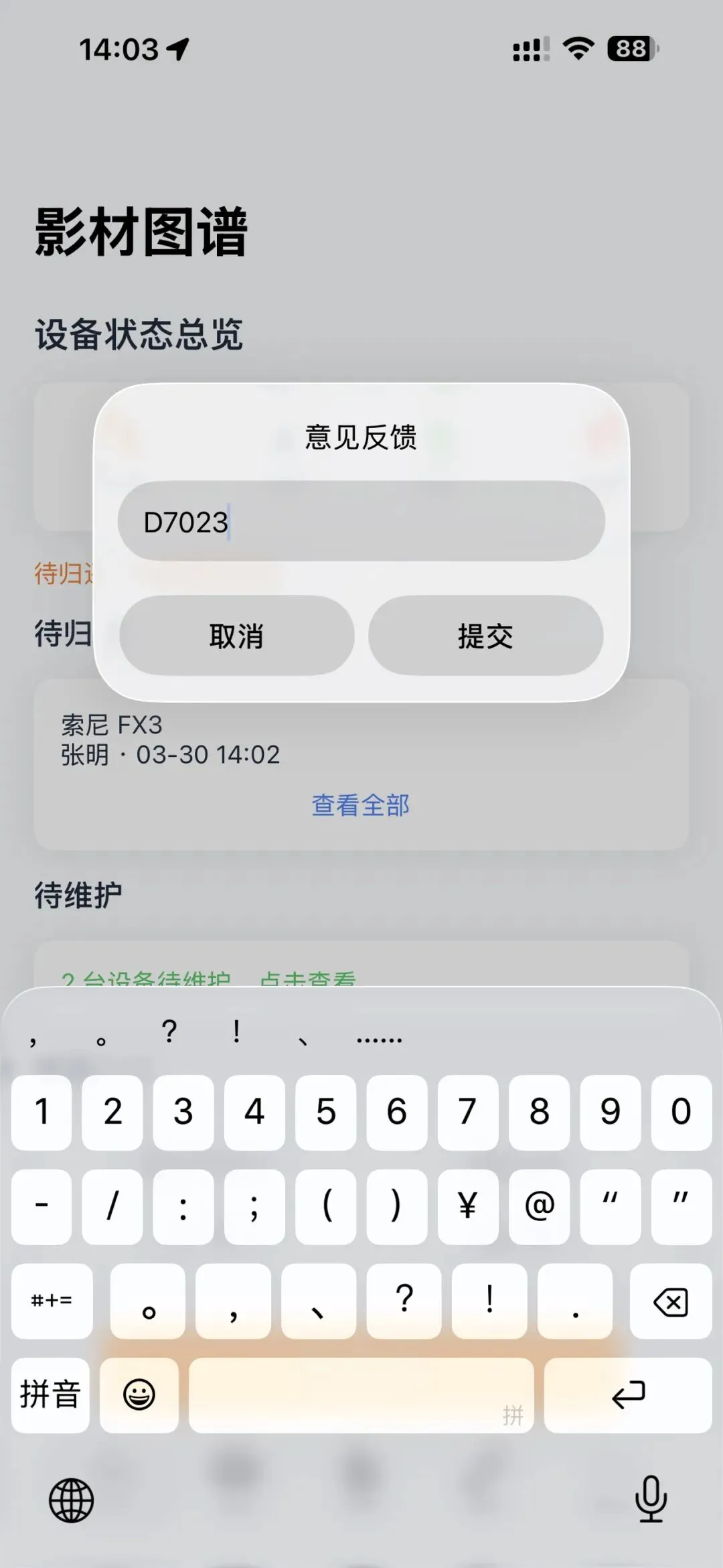 2️⃣、在意见反馈中输入D7203
