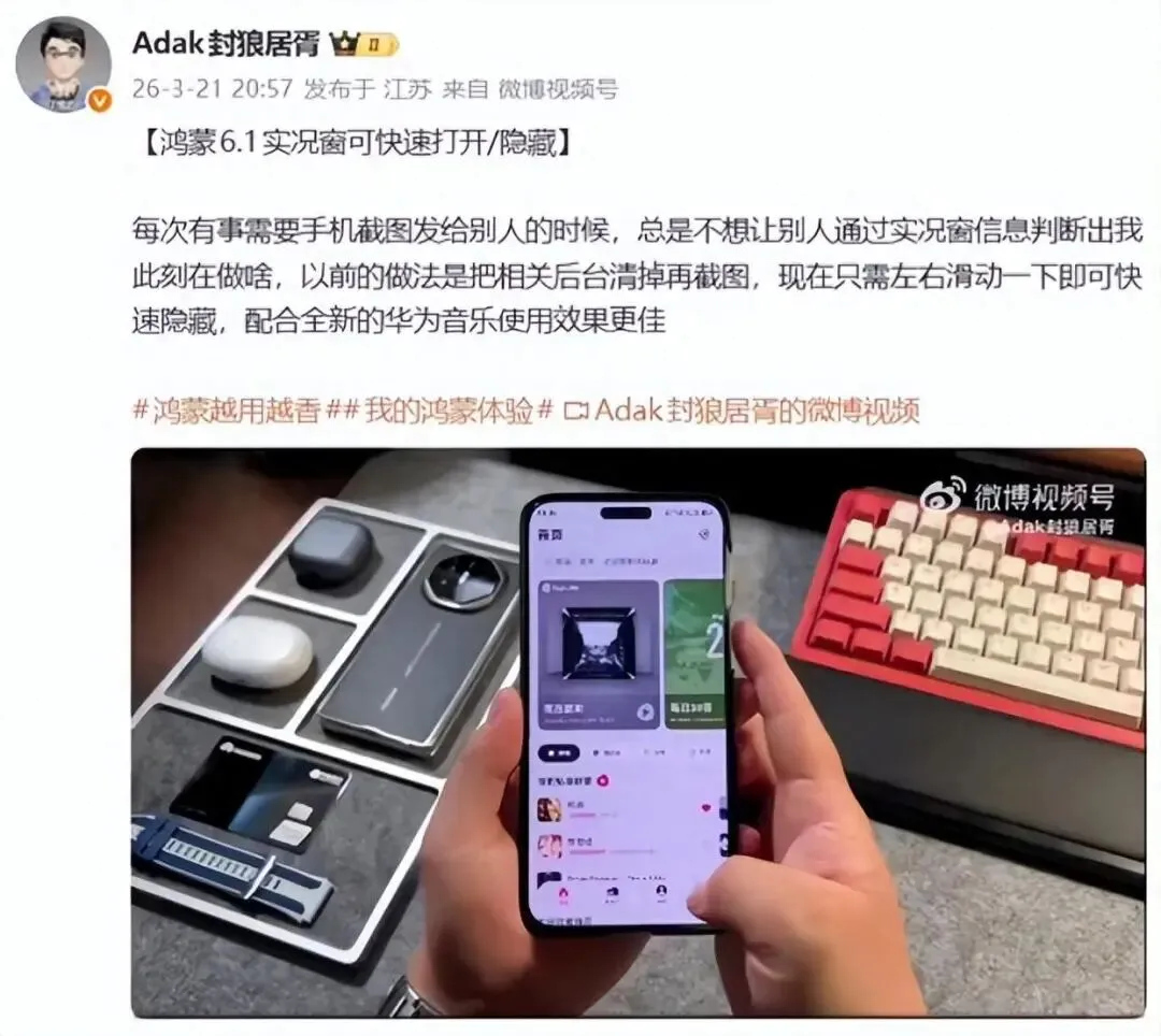 近期鸿蒙6.1的新特性曝光,一边是实况窗滑动交互的贴心优化,一边是音量单独调节的PC独占设定,在我看来这背后是华为对不同设备场景的精准判断。这种一半惊喜一半遗憾的更新,到底藏着怎样的产品逻辑?