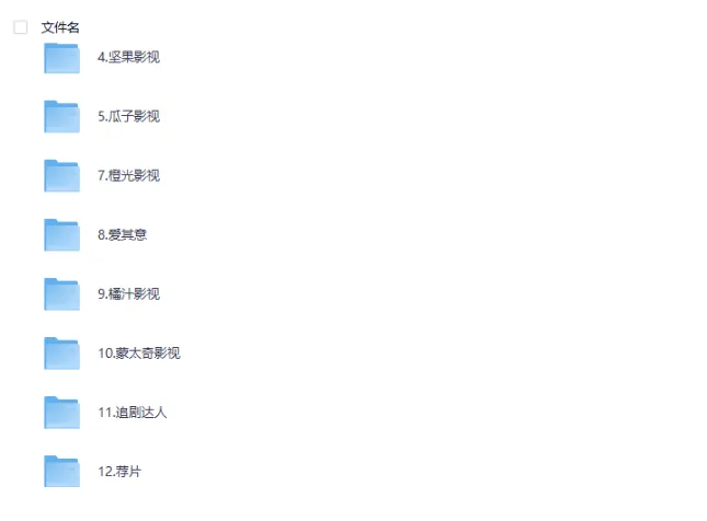 坚果影视 7. 瓜子影视 8. 橙光影视 9. 橘汁影视 10. 蒙太奇影视 11. 荐片