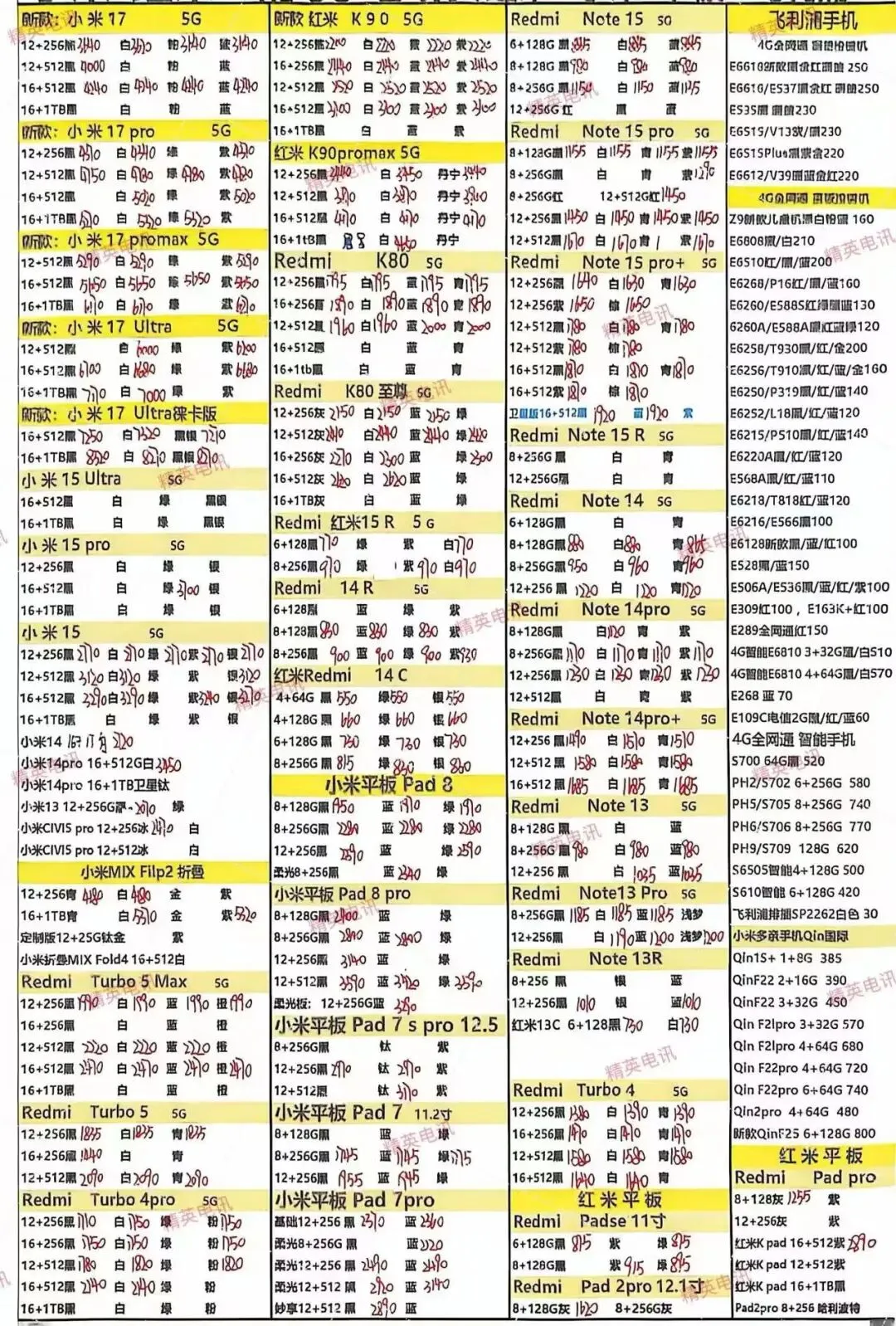 以下报价都是深圳华强北手机批发市场当天的最新批发价格(不含税),报价是我们的批发底价,零售拿货价格需加20~100元不等,京东包邮(量大价格可谈)