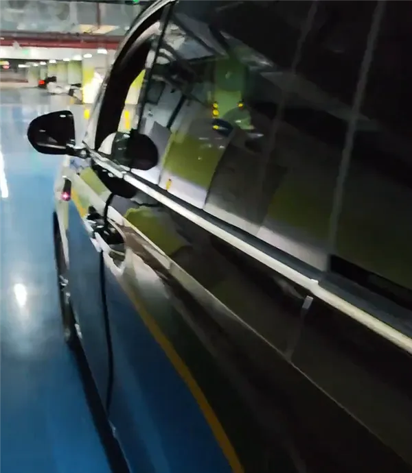 尾灯绝对是这款车最大的辨识度特征,其采用贯穿式,但并非简单的一条,灯腔里光源十分粗壮,且呈现类似尊界S800的星光璀璨的视觉效果,同时周围还设有环绕式灯带,中间被遮挡的区域则是智界的英文字母。