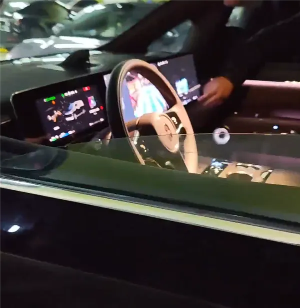 新车内饰一同得到曝光,不同于问界M9、享界S9等9系旗舰,智界V9采用了全新的一体式屏,分为仪表盘、中控屏和副驾驶娱乐屏,中控屏和副驾驶娱乐屏目测有所调整,最直观的当属边框变窄了。