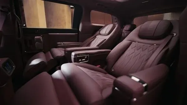 该车采用2+2+3的七座布局,车辆二排为双独立座椅,可以一键联动调节靠背、腿托、脚踏,达到1.05米的超长支撑,还支持旋转,可以实现45度迎宾,90度观景和180度对坐模式。