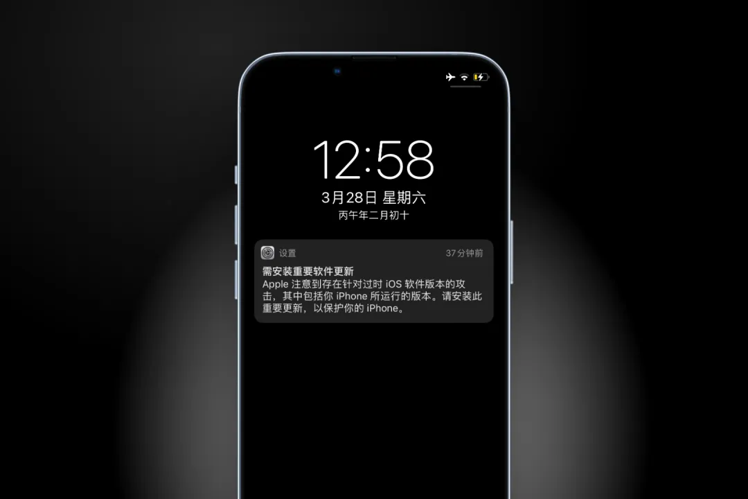 苹果在提醒中明确表示,已发现针对过时 iOS 版本的攻击,而用户当前设备正处于风险范围内,因此建议尽快更新系统以保护你的 iPhone。