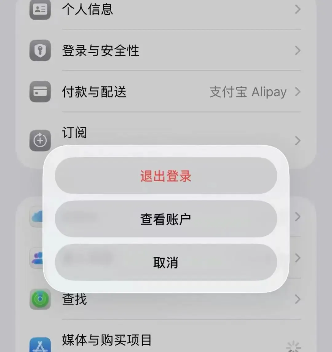 另外 iOS 26.4 中调整了账户切换流程,把退出登录放在设置里面的账号设置,需要点击媒体与购买项目才能退出账号,这对于需要经常切换账户的用户来说确实麻烦: