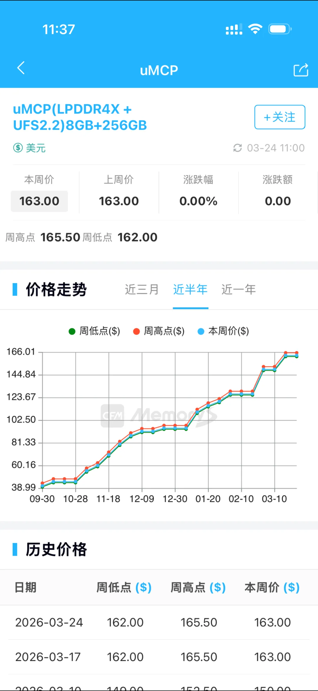 存储芯片的新货报价趋势。 (受访者供图)