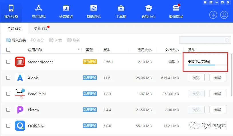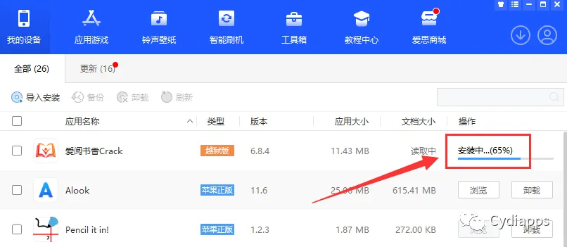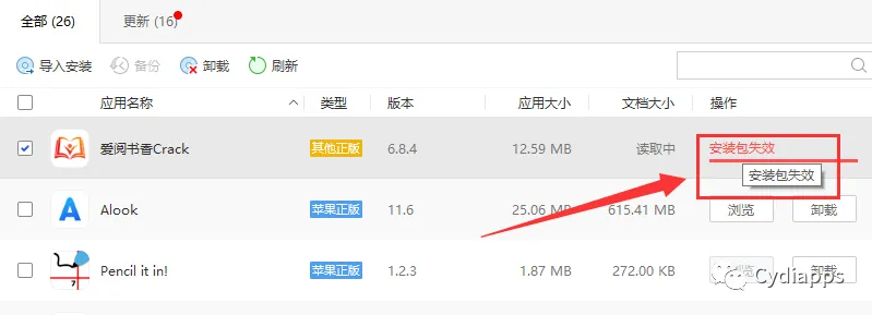 提醒:如果提示“安装包失效”或者“...验证失败或设备未越狱...”,(IPA一定要签名,要么使用巨魔/Appsync)