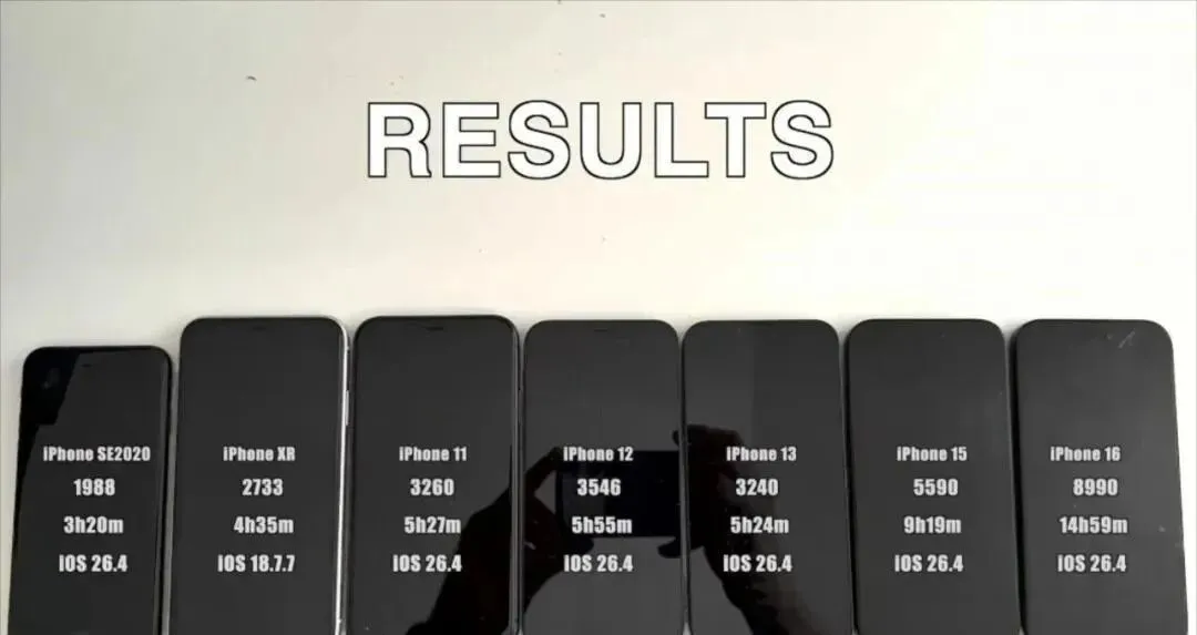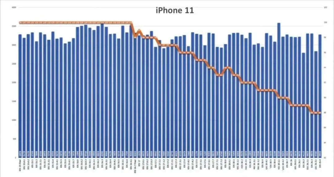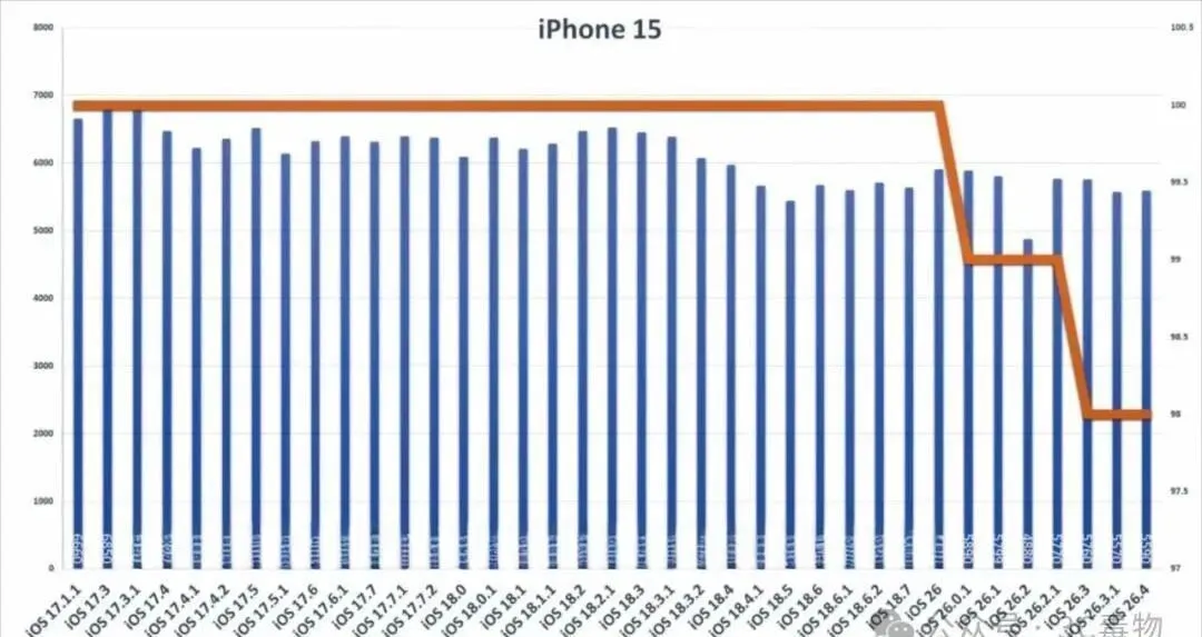 有意思的是,同批次更新里,老机型iPhone 11和12反而升得格外稳。iPhone 11电池分涨了444,iPhone 12涨了187,实测亮屏时长多撑了将近一小时。它们没有A16芯片,不用跑Apple Intelligence,反而靠着重写的后台管理,实现了微信不卡、抖音不发热、电池不虚标,同时17个高危漏洞的安全补丁一个没漏,全给补上了。