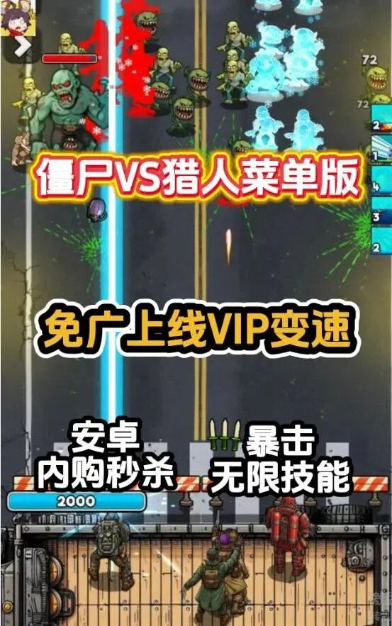 安卓僵尸VS猎人菜单版/免广无限VIP内购变速秒杀暴击无限技能多种猎人多种武器