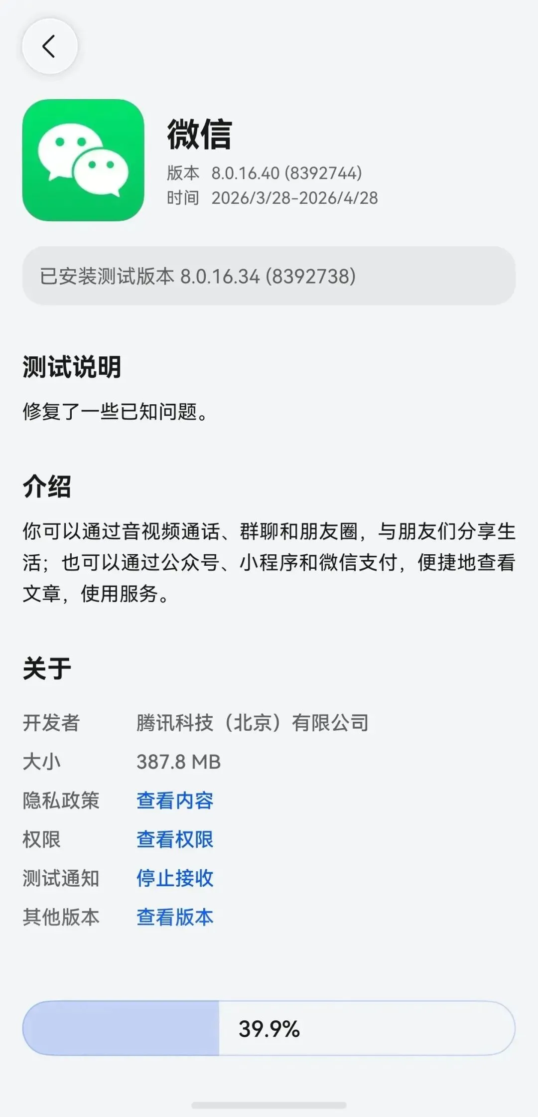 鸿蒙微信 8.0.16 版本除了微信官方更新说明中提到的「修复了一些已知问题」外,还更新了如下内容: