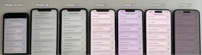 这次一共测了7台。其中6台升到了iOS 26.4,iPhone XR 留在 iOS 18.7.7 作为对照。其他设置全部统一,亮度、后台这些都是一样的条件。