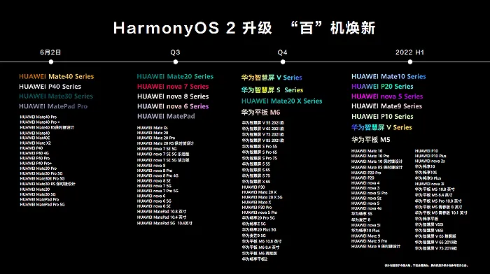 目前鸿蒙只支持一部分手机,公布了后面支持手机型号的时间表,具体大家可以看下面这一张大图。