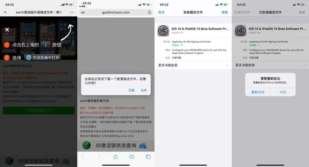 描述文件安装完成后,重新启动