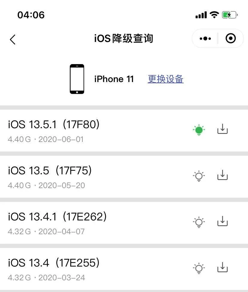 (想看自己的设备能不能降级?长按识别下方小程序)