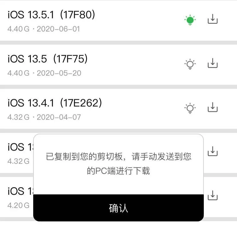 点击右边的下载按钮,下载地址就会复制到你的剪贴板,粘贴到 PC 设备上在浏览器打开就可以下载此版本固件。