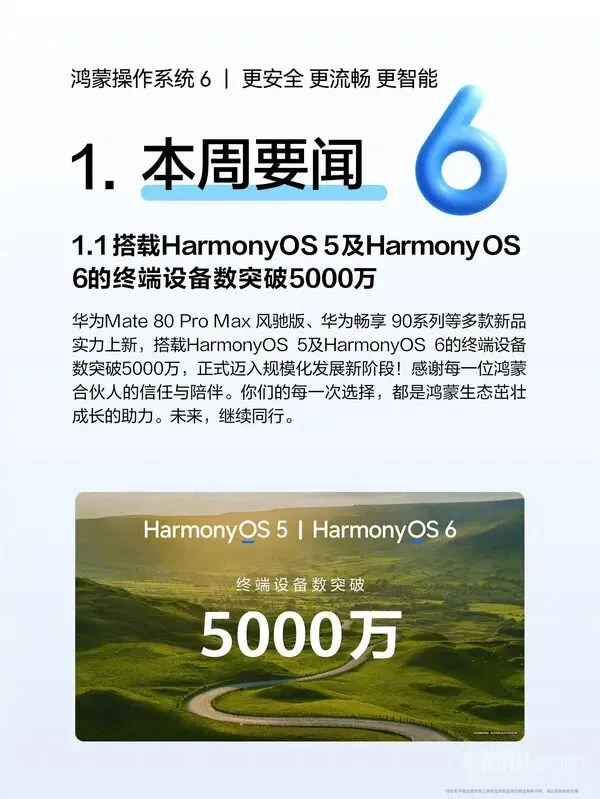 鸿蒙生态一周更新速览:鸿蒙终端设备数突破5000万台