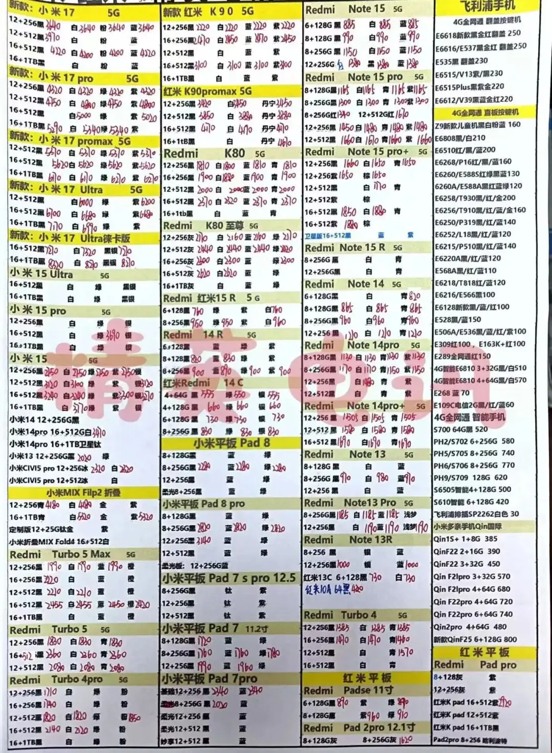 以下报价都是深圳华强北手机批发市场当天的最新批发价格(不含税),报价是我们的批发底价,零售拿货价格需加20~100元不等,京东包邮(量大价格可谈)