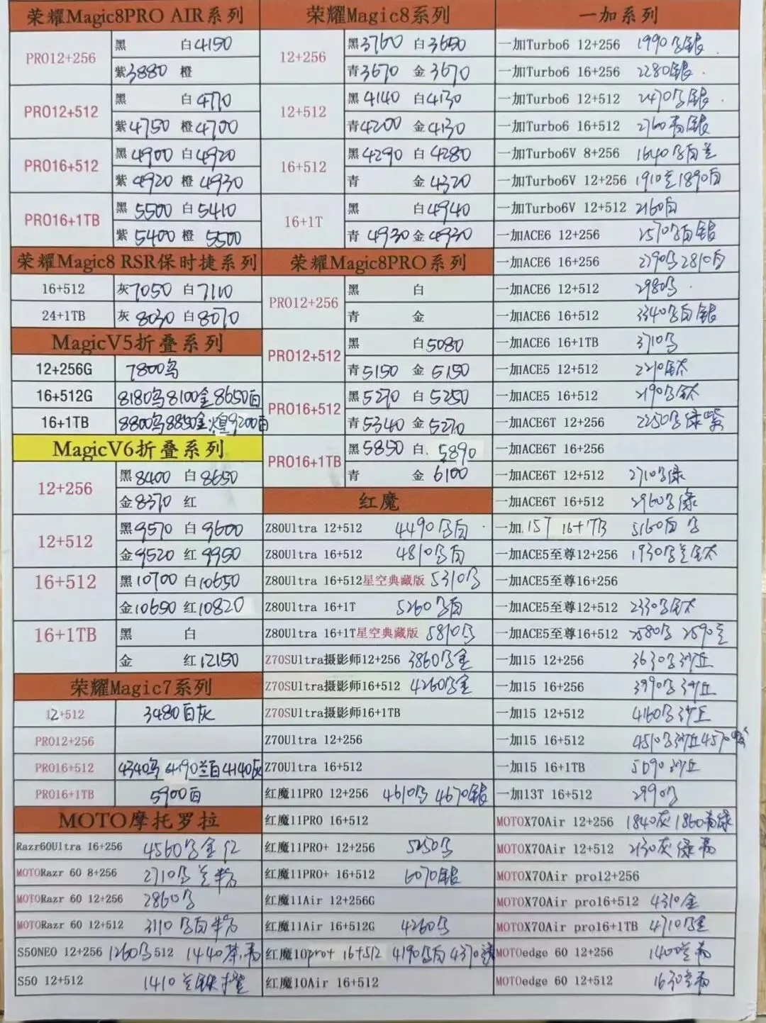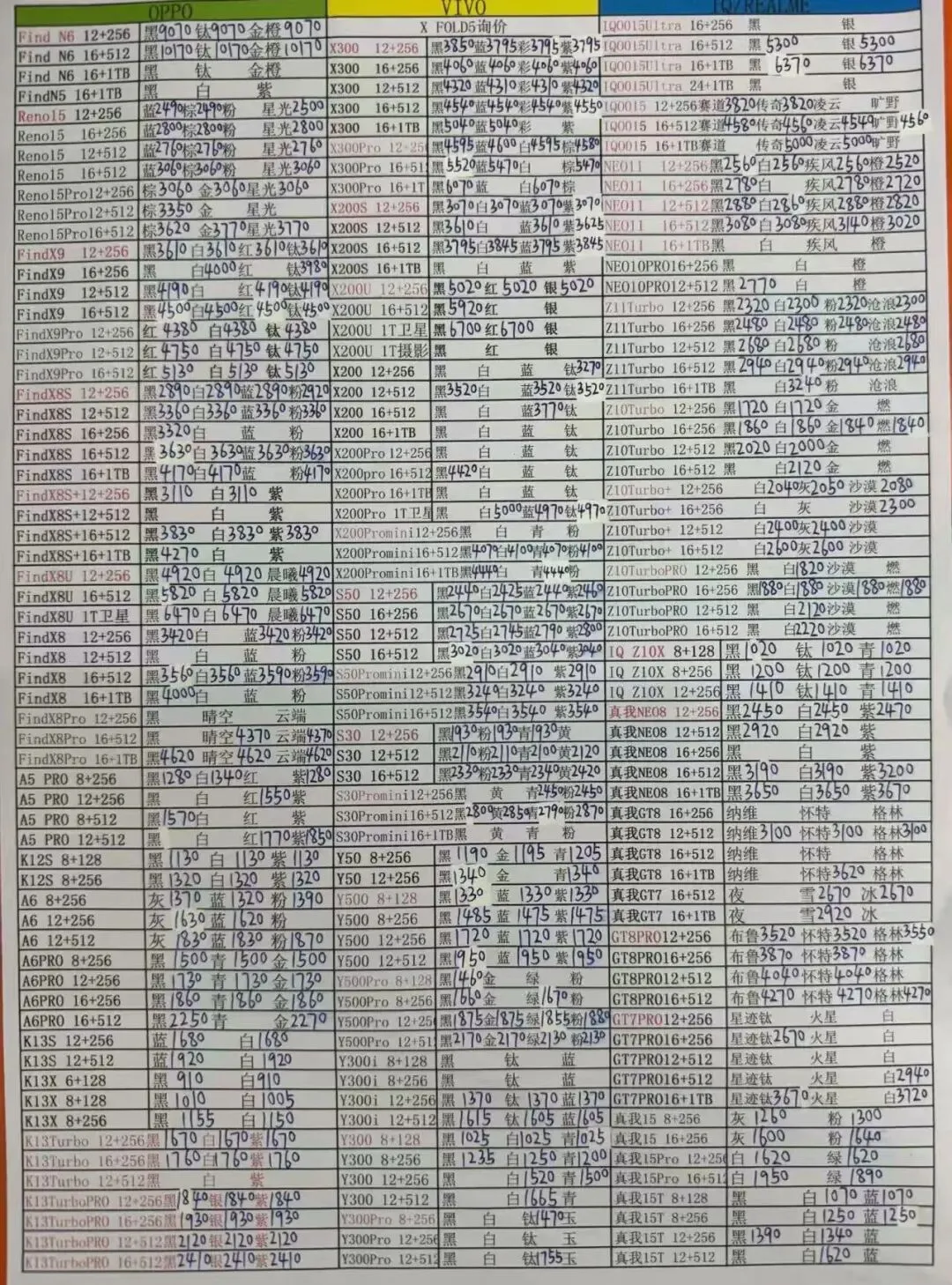 以下报价为深圳华强北商家交易底价,根据不同的提货量有相应的加价!零售:2500元以内的机器在报价的基础上每台加50;2500元以上的机器在报价的基础上每台加100