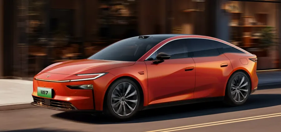 新车外观采用新能源极简风格,搭配封闭式前脸、贯穿式灯组、无框车门与溜背轿跑造型,兼顾运动与优雅。作为一款中大型轿车,其车身尺寸为513/1965/1506mm,轴距达到3020mm。