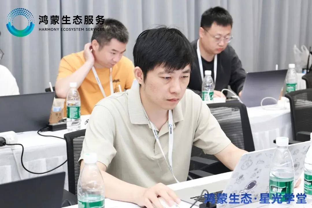 培训采用“原理精讲、代码实录、即时练习”的三位一体教学模式。课堂上,讲师针对分布式能力、AI开放能力集成、应用性能优化“四板斧”等复杂议题进行现场编码演示与深度解析。学员们则在配套的多个实操环节中,将理论迅速转化为动手能力,并通过小组协作攻克具体技术难点。尤其在每日的集中答疑时段,开发者们围绕上架审核、深层次性能调优等实际工作中的痛点,与讲师展开了热烈而深入的探讨,形成了“带着问题来,带着方案走”的浓厚研学氛围。