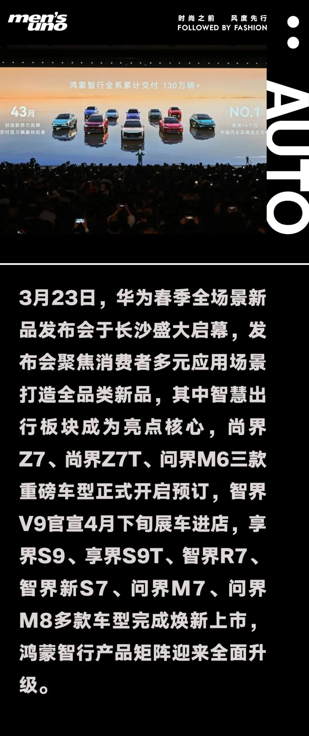 截至2026年3月23日,鸿蒙智行全系车型累计交付已超130万辆,仅用43个月便达成百万交付成就,刷新新势力品牌交付纪录。渠道与服务网络布局同样亮眼,目前鸿蒙智行已拥有1835个销售门店、946个服务门店,全国城市覆盖率达90%,实现销售与服务的全域覆盖。据规划,今年年底其销售门店将增至2459个以上,服务门店增至1459个以上,全国城市覆盖率超94%,进一步提升渠道覆盖与服务能力。秉持“安全是最大的豪华”核心理念,截至2026年3月22日,鸿蒙智行旗下车型依托智能系统实现主动安全避障,累计避免可能的碰撞超370万次,用技术筑牢出行安全防线。