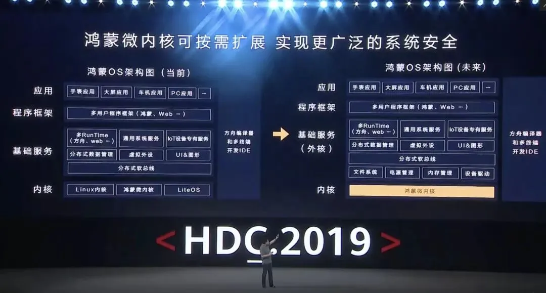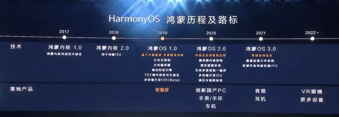 在大会现场,余承东公布了鸿蒙 OS 的两年研发历程并宣布 鸿蒙 OS 正式开源,这是全世界第一个基于微内核的全场景分布式 OS! 据介绍,2019 年发布的鸿蒙 OS 属于 1.0 版本,已经可以落地支持智慧屏,明年将公布鸿蒙 OS 2.0 版本,将应用于国产 PC、手表、手环和车机中,届时将利用高性能技术栈、支持多语言统一编译、多终端开发 IDE 并满足相关应用标准。