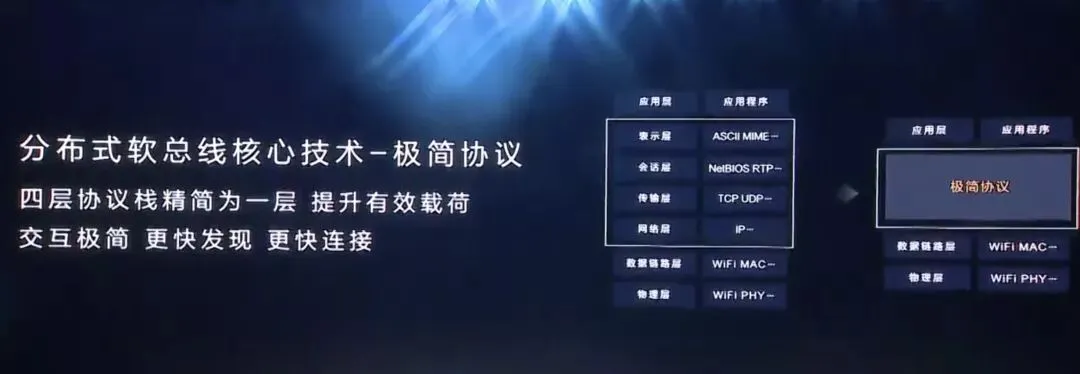 此外,分布式软总线也是值得重点关注的核心技术,整体遵循极简协议,将四层协议栈精简为一层,可以提升有效载荷,让交互极简,并实现更快连接。