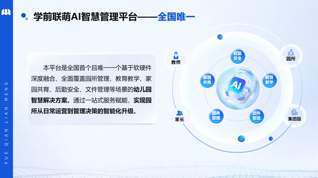 学前联萌AI管理平台,实现全场景、全数据互联。