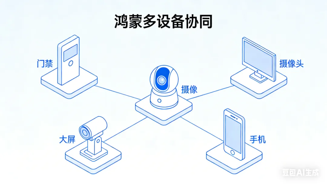 幼儿园天生是多角色、多设备、多场景的联动场景:有园长、教师、家长等多角色,有门禁、摄像头、智慧大屏等多设备,有晨检、教学、安防等多场景。过去这些东西各自为战,互不搭理;而鸿蒙,就像一个“超级连接器”,把它们全部打通、协同工作。
