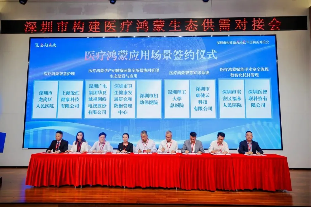 会上,深圳市健研数管中心积极发挥医企桥梁纽带作用,与深圳广电集团华夏城视网络电视股份有限公司、市妇幼保健院等单位共同签署医疗鸿蒙应用场景合作项目,南方医科大学深圳医院与深圳市健研数管中心共同组建的“深圳市临床检验与体外诊断医工智鸿战略联盟”正式揭牌,标志着中心在推动临床检验、医疗装备与开源鸿蒙技术融合应用方面迈出关键步伐,进一步加速医工智融合创新发展,推动医疗数字化、智能化纵深发展。