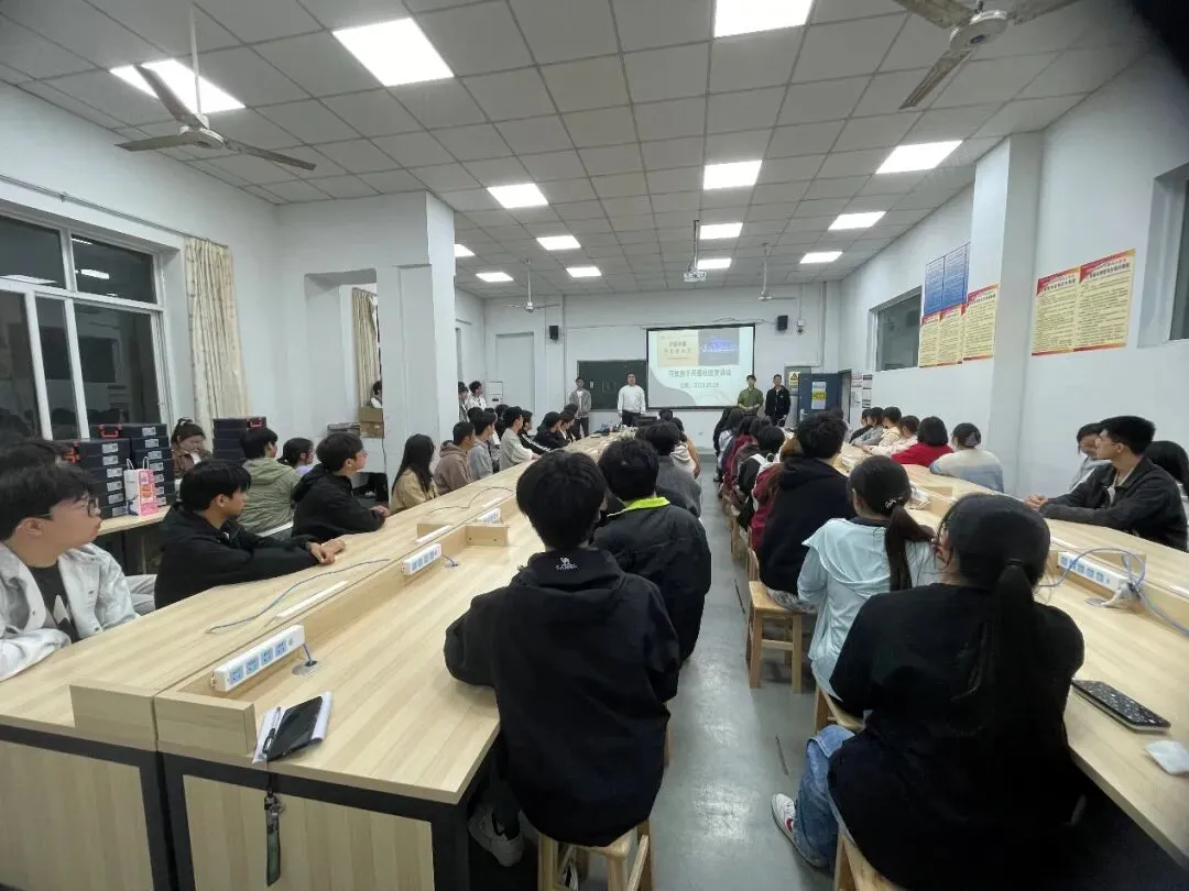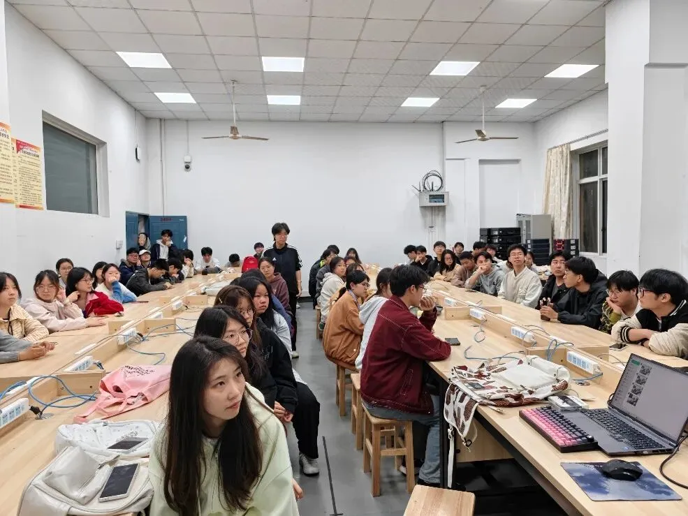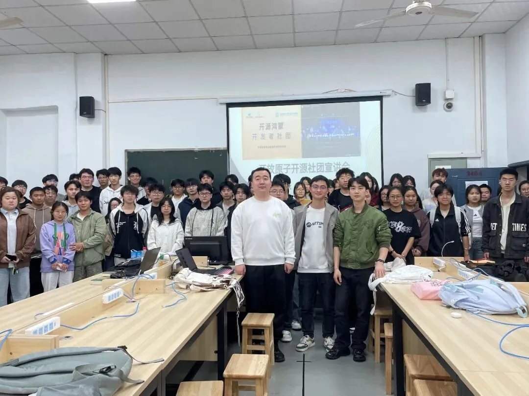 招新现场,社团指导教师为同学们带来精彩的鸿蒙生态讲解,从鸿蒙系统的设计理念出发,深入浅出地介绍了南向设备开发与北向应用开发两大学习方向,帮助同学们厘清学习路径、明确发展方向。南向开发聚焦硬件底层与芯片适配,北向开发则侧重应用软件与用户体验,两大方向共同构成了鸿蒙生态的技术版图。作为开放原子开源基金会孵化的高校社团,该社团致力于为同学们提供开源鸿蒙(OpenHarmony)技术学习以及参与项目实战的交流平台,现场还通过技术演示、项目案例分享等方式,生动展示了鸿蒙系统在工业互联、智能穿戴、智慧家居等领域的广阔应用前景,让同学们直观感受到国产操作系统的技术魅力与行业价值。