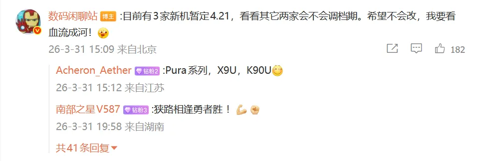 另外,@数码闲聊站 表示,目前有3家定于4月21日发布新品。