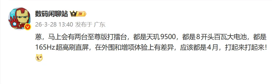 结合之前的爆料,即将推出的两款天玑9500机型,预计为REDMI K90至尊版与一加Ace 6至尊版,侧重极致性能,4月下旬堪称数码爱好者狂欢月。