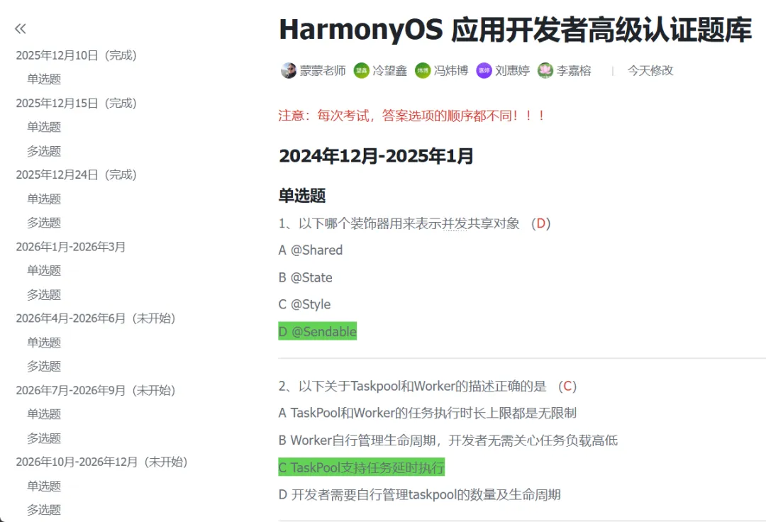 工欲善其事,必先利其器。包含最新版的 DevEco Studio 配套插件、各版本 SDK 镜像、以及文中所有实战项目的完整源代码,真正做到“开箱即用”。05 | 2026 面试题库