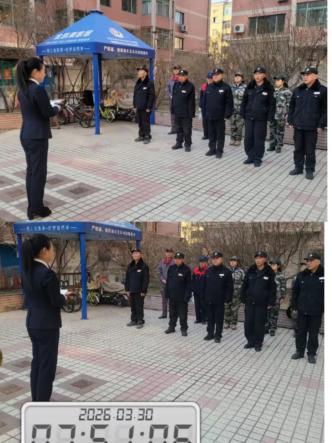 “过去一天的成绩已经归零,今天我们要重新聚焦标准。大家要记住:执行力就是我们的生命线。无论是门岗的礼节礼貌,还是楼道的清洁卫生,或是维修的响应时效,都要严格按流程来,不能打折扣。今天大家就一个目标:把简单的事情重复做、用心做,做到让业主认可为止。”