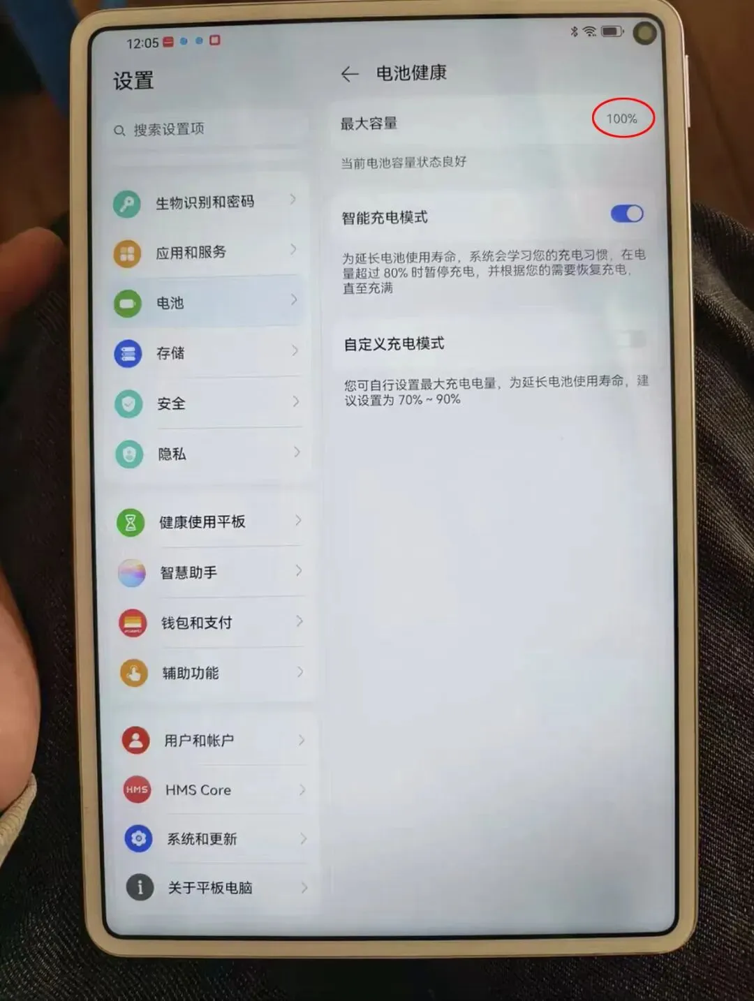 最牛的是,这台二手平板的电池健康度居然是100%!卖家承诺无拆无修,店铺专卖华为平板,160条评价全是好评,可信度拉满。从卖家拍的多角度视频看,机器侧面几乎没使用痕迹,四角连个磕碰都没有,外屏玻璃的凸起厚度一看就是原装的,我直接就信了。