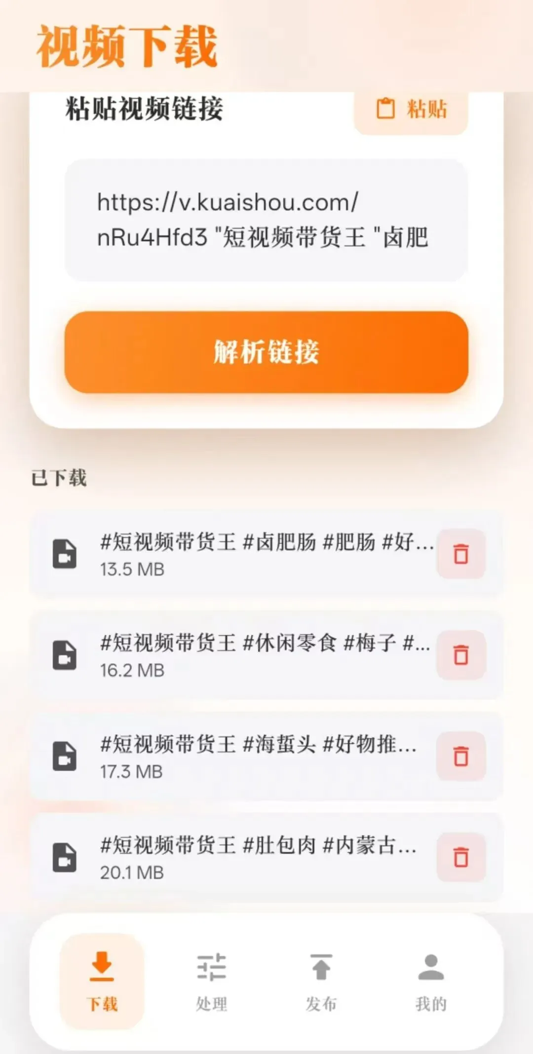 1. 上传视频:打开APP,批量导入本地视频或链接解析下载