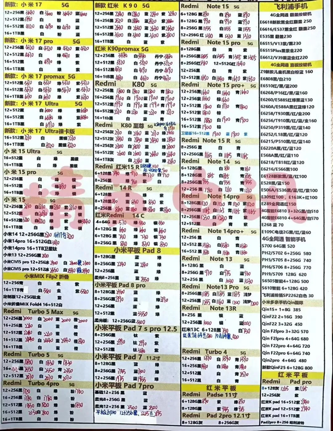 以下报价都是深圳华强北手机批发市场当天的最新批发价格(不含税),报价是我们的批发底价,零售拿货价格需加20~100元不等,京东包邮(量大价格可谈)