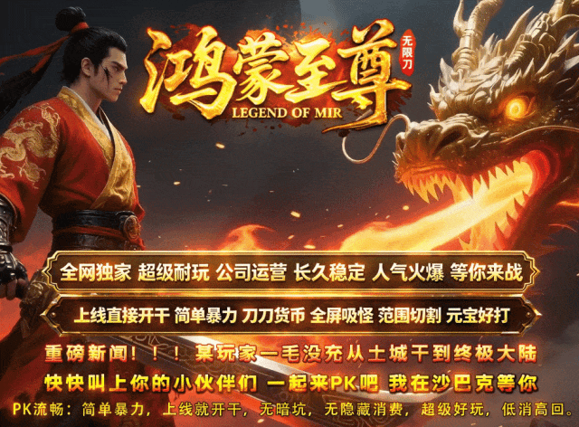 【鸿蒙至尊】一刀 9999,攻速无上限,进来就是干!散人零氪也能霸服,三千大世界,神尊降临,万古至尊由你登顶!!