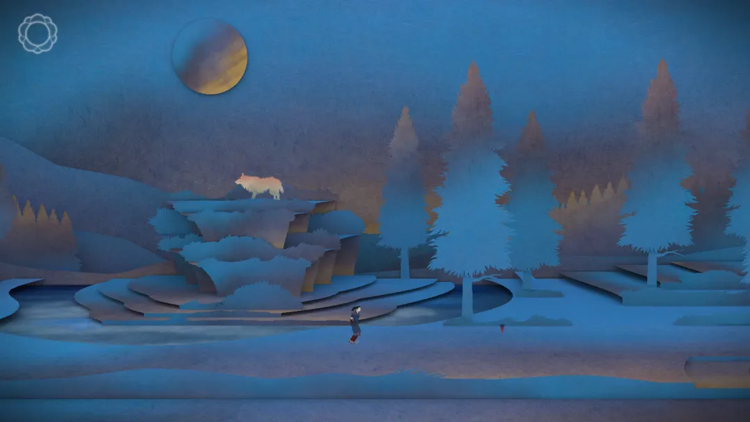 游戏难度适中,并没有出现耗费太多脑细胞的关卡。"微光"的提醒非常清晰,玩家只需要仔细观察场景画面,就能领会游戏制作者的意图。游戏中的谜题设置需要玩家细心观察,但不会让玩家感到挫败。例如,在游戏开始阶段有个台阶,无论玩家如何尝试打开,它都会收回去。仔细观察后会发现上面有一头狼在等待,玩家需要先到后方的风铃树,通过顺序拨动风铃,让狼安然入睡,才能回到这个梯子处继续前进。