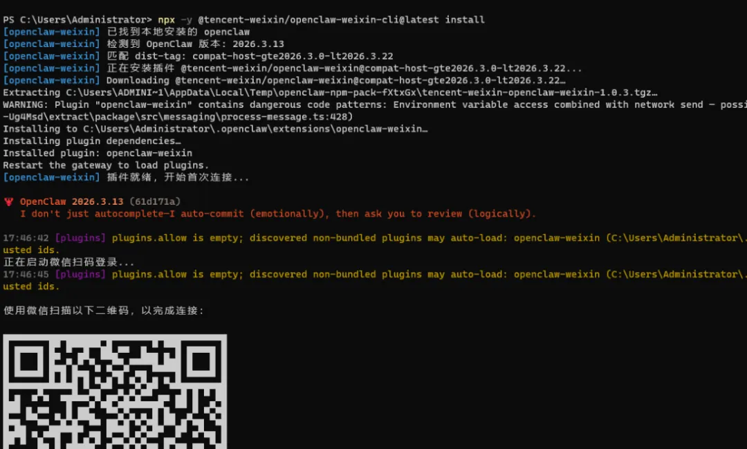 用微信扫一下终端里的二维码,确认授权,稍等片刻——