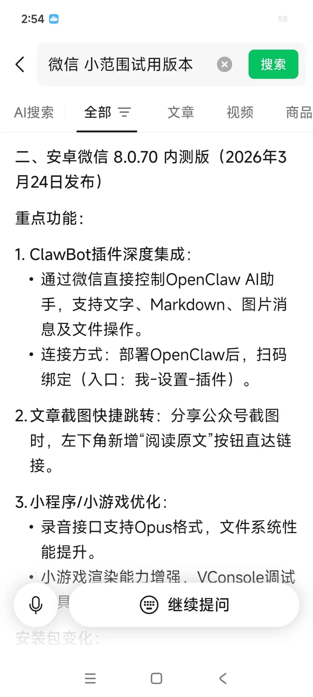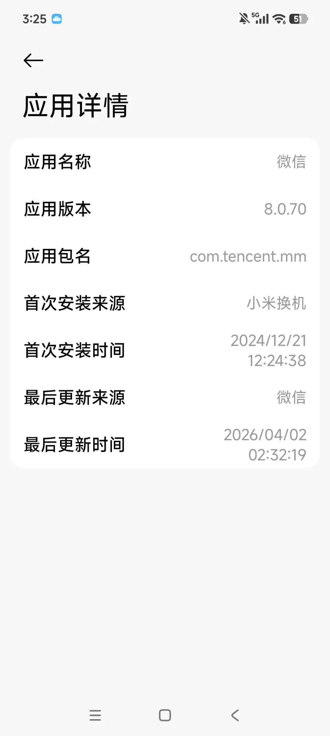 实际上,8.0.70微信安卓正式版本2026年03月30日已经发布了,因为我的手机没有相关提示,今天凌晨才发现:小米手机系统设置里的应用详情如下: