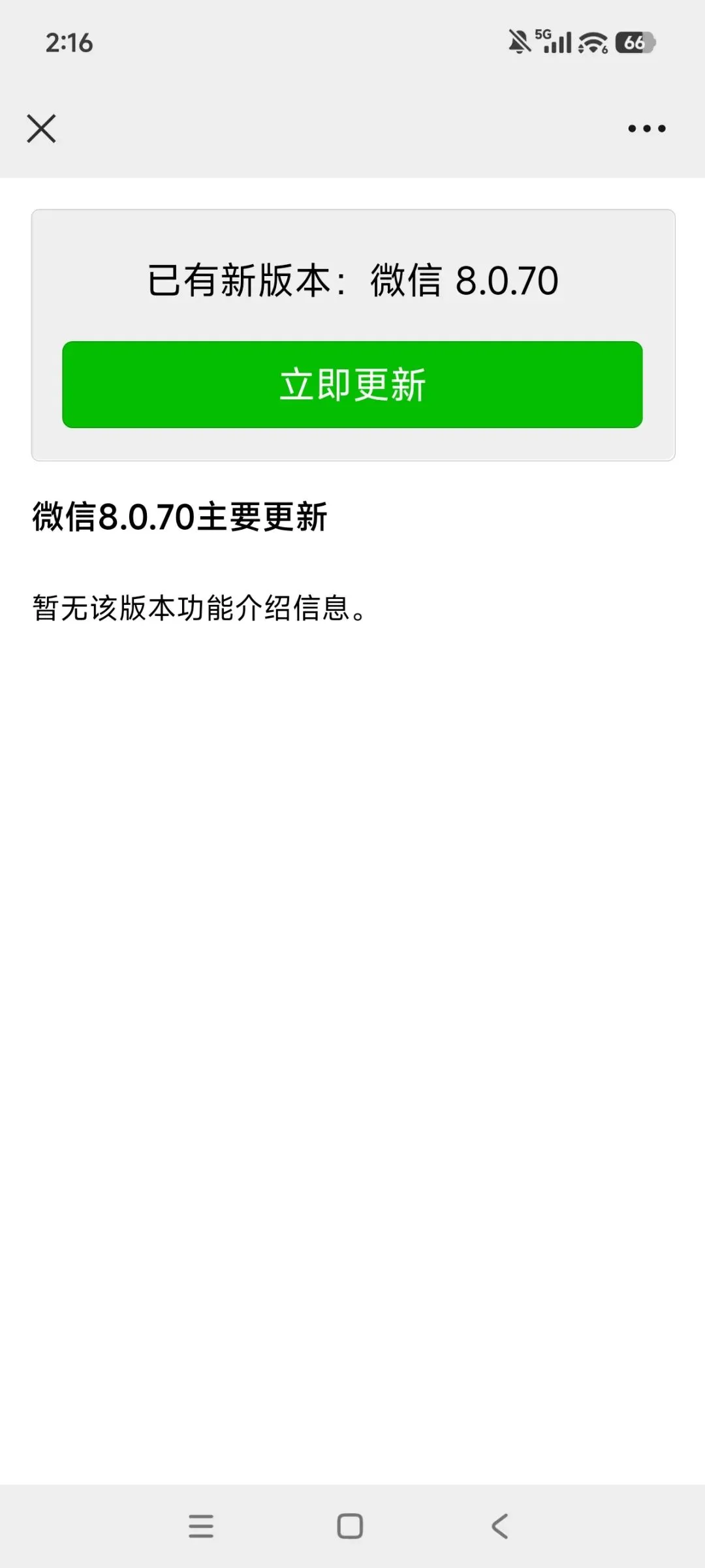 之前有陌生朋友来我的公众号下留言,反馈他们的手机微信版本已经更新到8.0.70,那时我的手机上的微信版本还是8.0.69,所以,早期更新微信应用程序的同志,下载的版本应该是小范围的试用版本:8.0.70内测版。3月30日,微信安卓应用程序已经正式更新到8.0.70版本,以小米手机为例,一步步教大家更新方法。点击版本更新,打开界面如下: