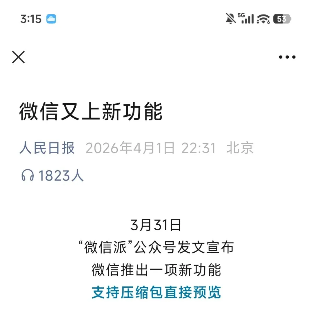 昨天人民日报官方微信公众号也已经发布了微信的新功能介绍,如下: