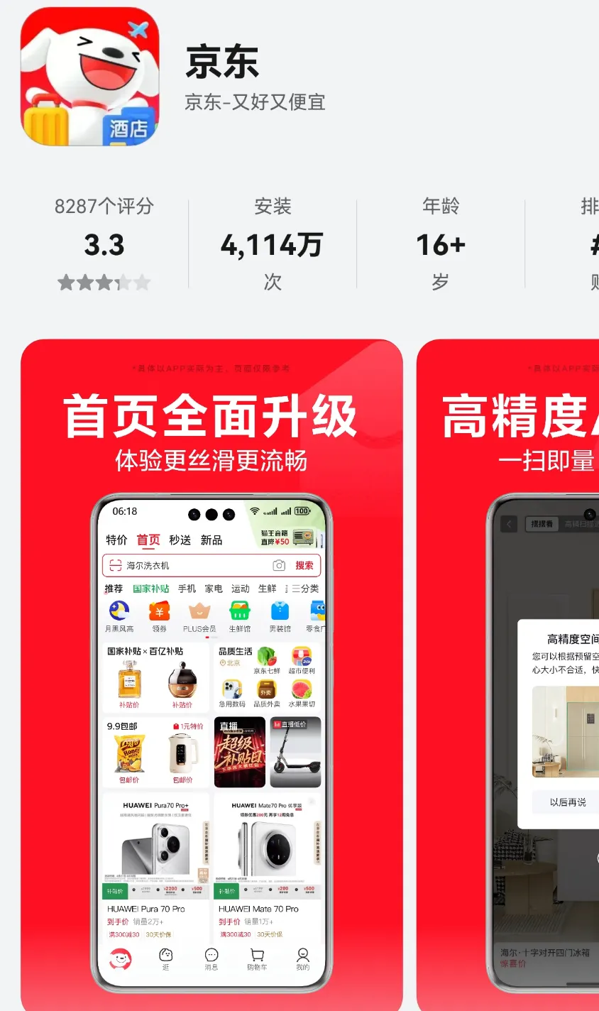 【AR体验】AR试摆加量尺,家电选购不纠结【首页】全面升级,体验更丝滑流畅【秒送】秒送全新升级,每天抢20元餐补【品牌饭卡】安心充值京东担保,点餐更优惠【我京】我京全新改版,个人信息高效管理