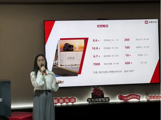 杨总表示,丰联智家自成立以来,始终致力于鸿蒙智家领域的深耕与探索,坚持以用户需求为核心,以服务为中心,构建协同、共赢体系。她全面分享了公司在智能领域的战略布局、夯实鸿蒙智家与异业深度合作,强调“不单打独斗,而是多方共融。杨总着重阐述了“人车家”场景的核心理念,同时为后续探讨跨界联动奠定了坚实基础。