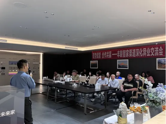 交流会正式进入分享环节,丰联智家负责人杨总率先登台,围绕企业发展历程与企业文化展开深入讲解。
