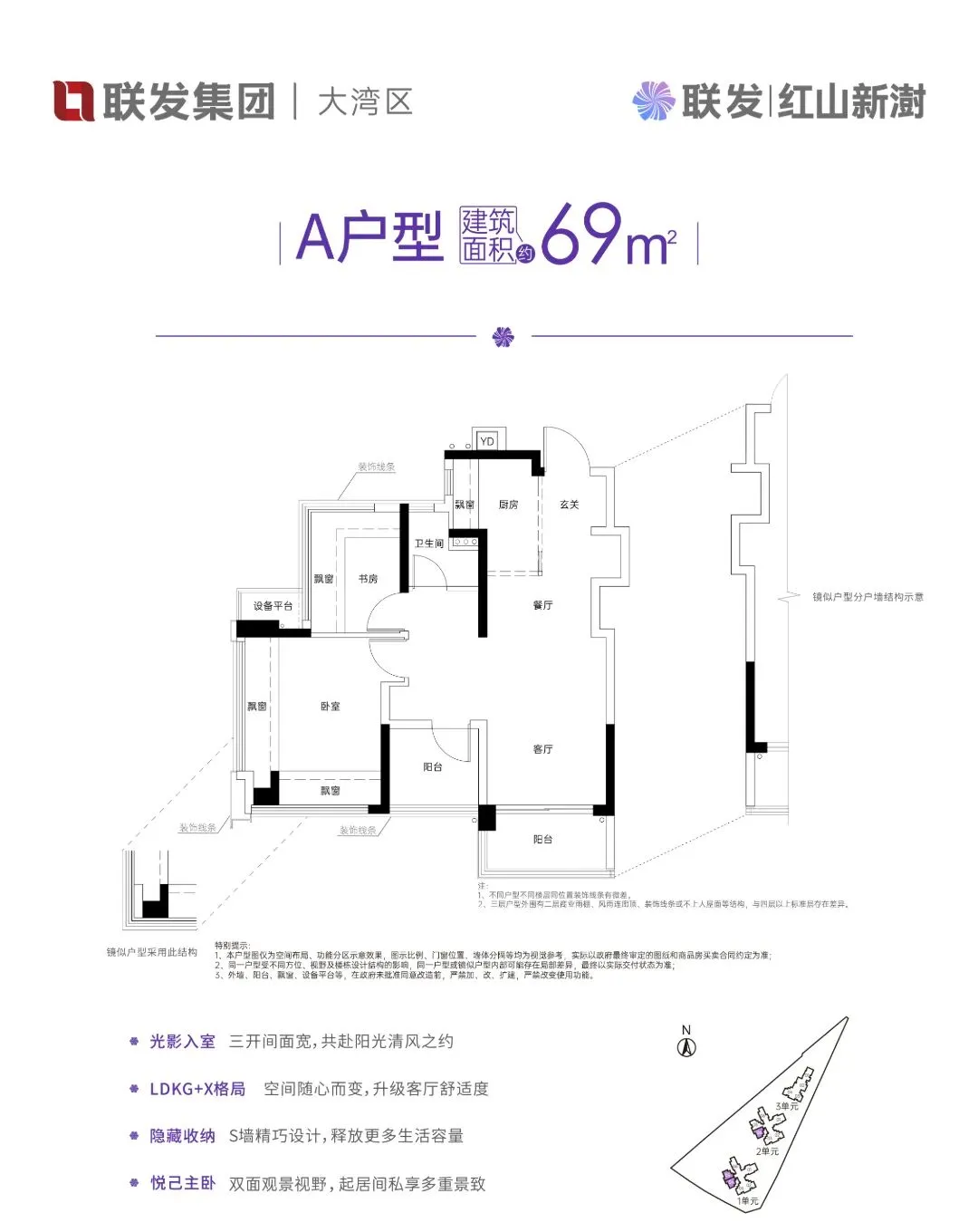也就是说,你可以在69平里拥有三个独立的功能区——书房、儿童房、茶室,随你安排。全深圳面积最小的南向三空间,极致利用,没有浪费。