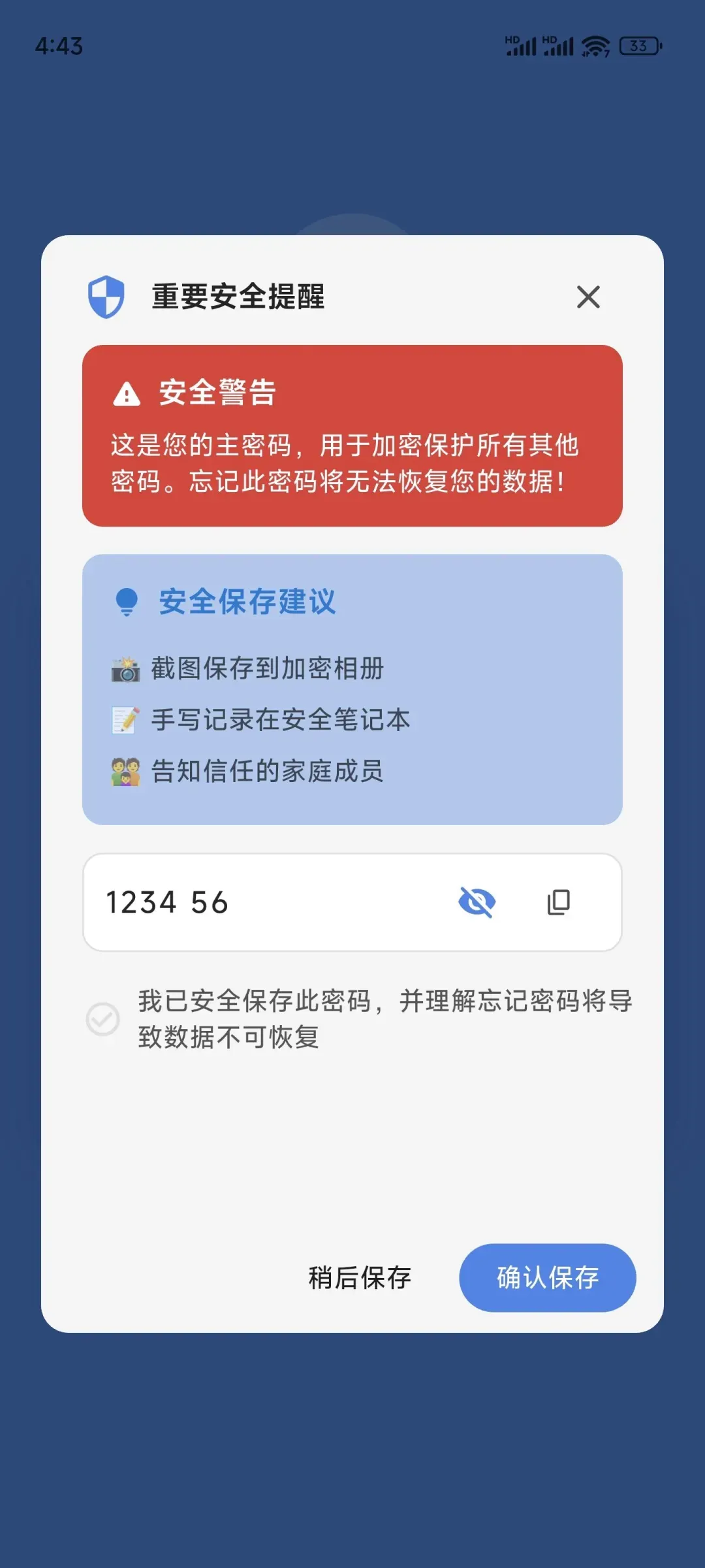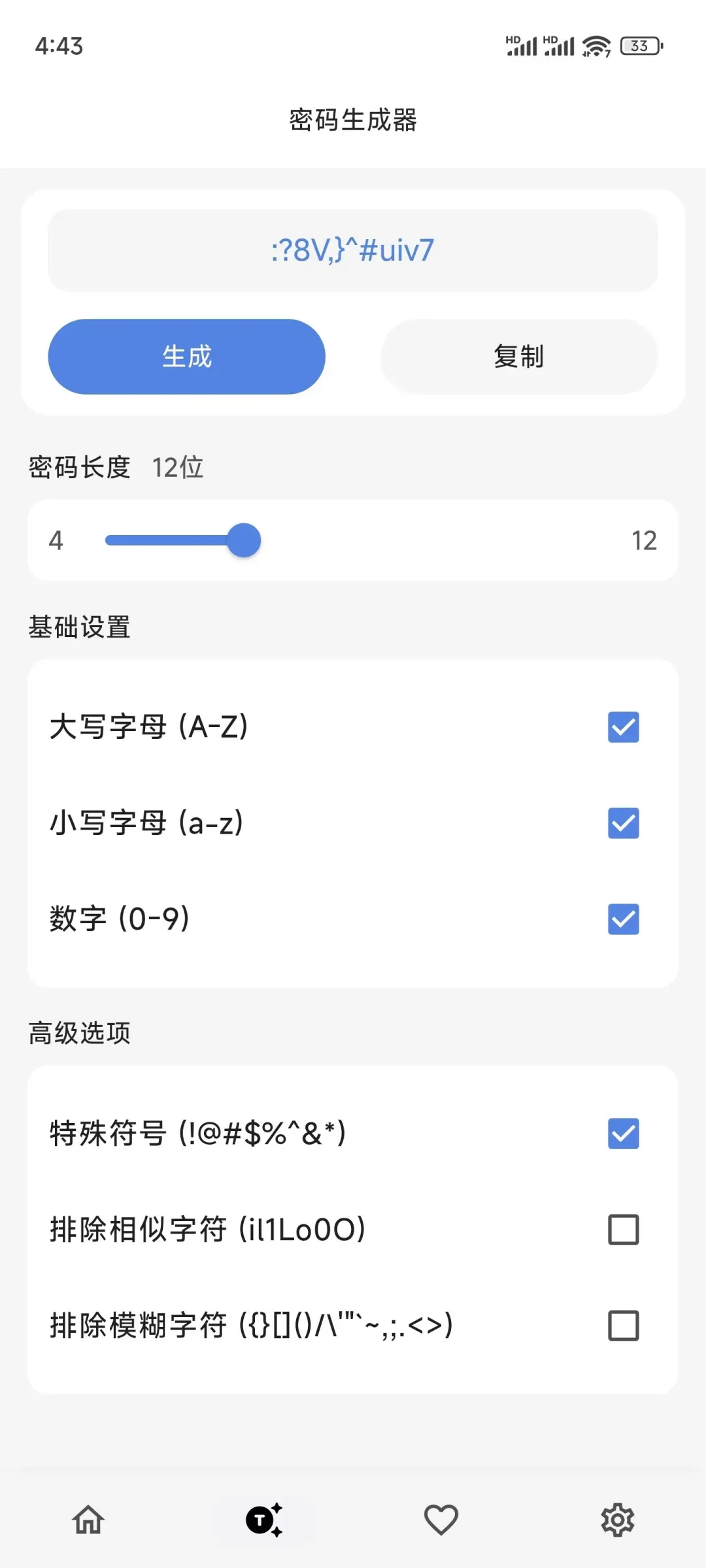 它还支持一键生成高强度随机密码。以前总为了好记,只能用“123456”这类简单密码,现在直接让它生成复杂无规律的密码,既大幅提升安全性、不易被破解,又不用再绞尽脑汁想密码,省心又安全。