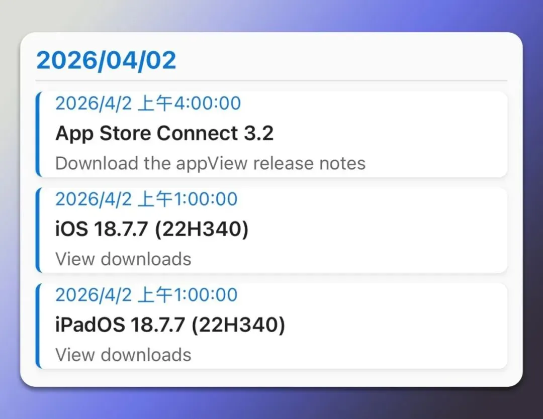 今天凌晨,苹果罕见地又推送了 iOS 18.7.7与 iPadOS 18.7.7系统更新,版本号为:22H340。